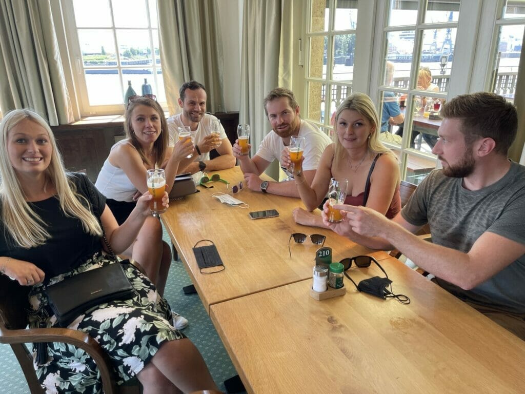Dein Ticket für die St. Pauli Bier Tour beinhaltet ein Bier pro Person in jeder besuchten Brauerei. Hast du deinen Favoriten gefunden, kannst du dir gern ein weiteres oder ein anderes Bier von der Taplist bestellen. Wir sitzen bei der Bierverkostung in Hamburg immer wieder gemütlich zusammen und vertreiben uns die Zeit beim Klönschnack, wie man in Hamburg sagt.
